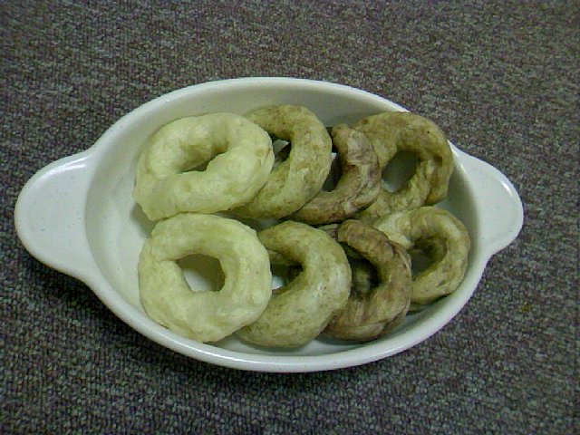 そしてそれをそのまま揚げると、生地をつなぎ合わせた部分がクラスト常にバックリ割れて、見事な焼き芋(笑)になると言うわけ。
